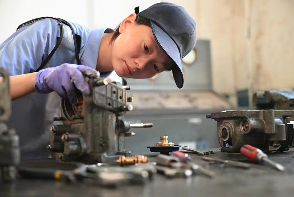 工作台上,大小不一、形态各异的阀件静静陈列。与这些沉重的“铁疙瘩”打交道是项体力活,最重的阀件近20斤,工作中搬抬是常态。然而,女检修工总能将各类配件有条不紊地迅速摆放归位。在她们眼中,阀件检修如同医生诊治病人,必须做到“眼到、手到、心到”,这不仅关乎安全,也关乎每一个修复部件的长久可靠。