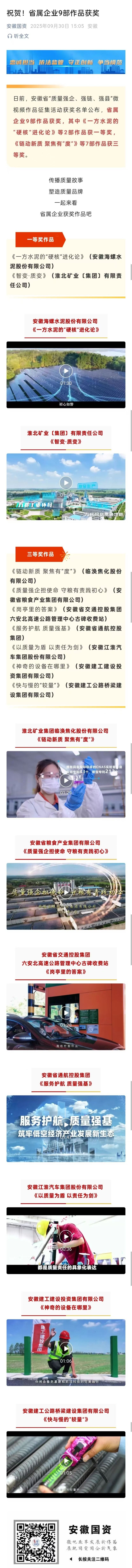 《安徽国资》祝贺!省属企业9部作品获奖
