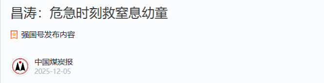 来源:《学习强国》中国煤炭报强国号发布 2025年12月5日