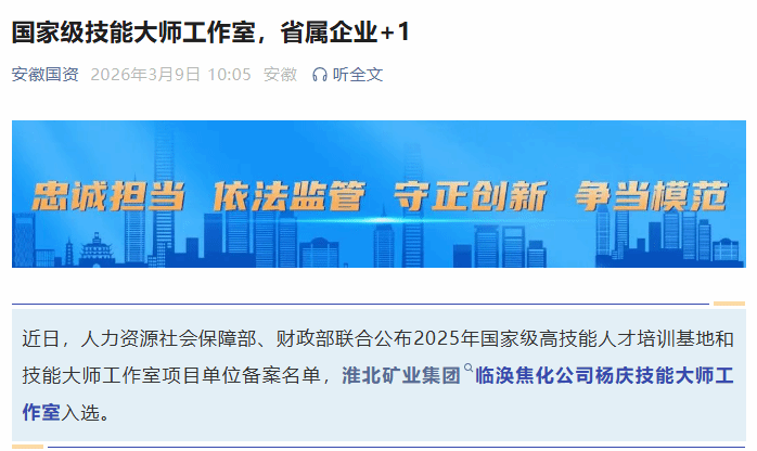 工作室注重发挥“传帮带”作用,培训职工近4000人次。其中,15人在国家一类赛事、省级技术比武中获得名次及表彰,2人分别获省、市五一劳动奖章,2人获评安徽省青年岗位能手。工作室先后获评“中国长三角劳模工匠创新工作室”“安徽省劳模工匠创新工作室”“安徽省技能大师工作室”“全国煤炭行业技能大师工作室”。