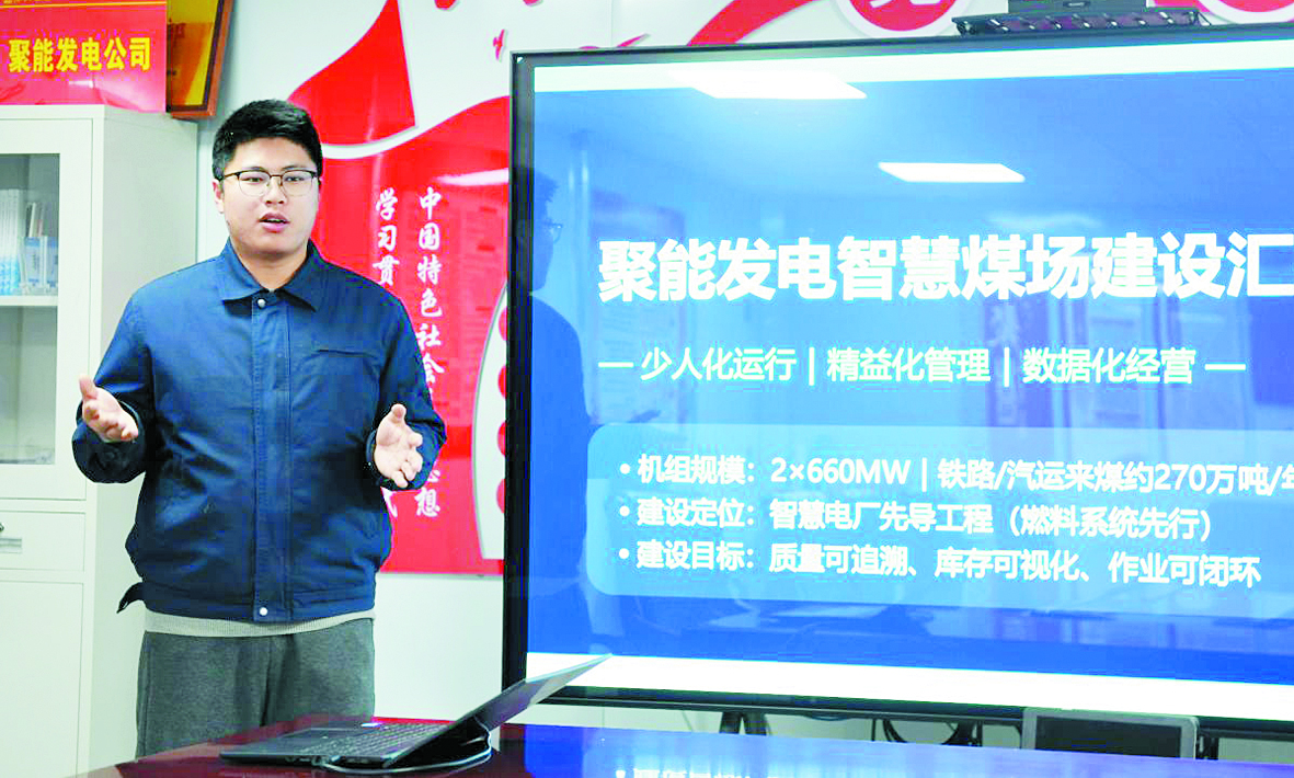 “聚能发电作为新建电厂,具备‘高起点谋划、高标准建设’的优势。我希望从基建阶段就为智慧电厂建设预留接口、夯实基础,尽可能避免走‘先投产、后补课’的老路。”围绕这一思路,李海洋正推动数智化工作室从“数据、平台、场景、机制”四个方面发力,梳理设备台账、测点信息、工程节点等基础数据,夯实数字底座;探索工程建设、设备管理、燃料管理协同平台,推动管理模式由“经验驱动”向“数据驱动”转变;结合企业实际,重点谋划智慧煤场建设,围绕数字化煤场、智能巡检、斗轮机无人值守、智慧掺配、采制化全自动系统等方向开展整体设计,努力为后续智慧电厂整体建设打下基础。