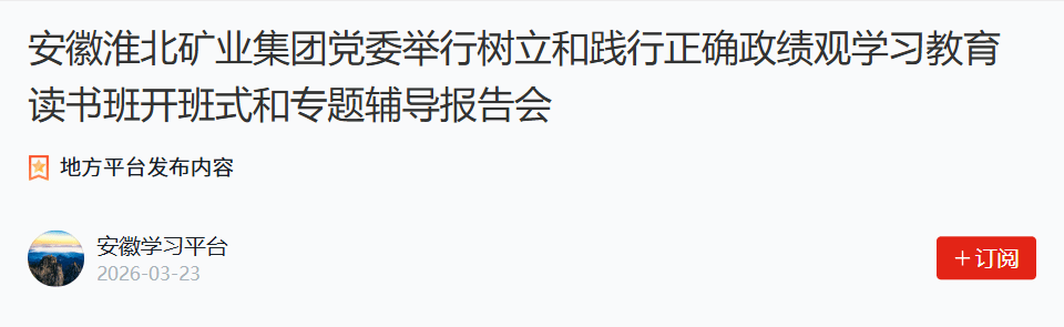 3月23日,安徽省淮北矿业集团党委举行树立和践行正确政绩观学习教育读书班开班式和专题辅导报告会,邀请省委党校(安徽行政学院)国家治理教研部主任、教授倪良新作专题辅导报告。淮北矿业集团党委书记、董事长、总经理孙方主持并讲话,强调要深入学习贯彻习近平总书记关于树立和践行正确政绩观的重要论述,切实增强贯彻落实的政治自觉、思想自觉和行动自觉,推动学习教育走深走实、见行见效。