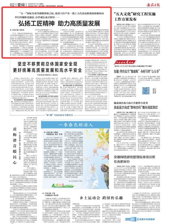 在“五一”国际劳动节即将到来之际,为更好地展现安徽新时代产业工人的风采,4月16日,省政府新闻办举行“弘扬工匠精神 助力安徽高质量发展”媒体见面会,邀请po18