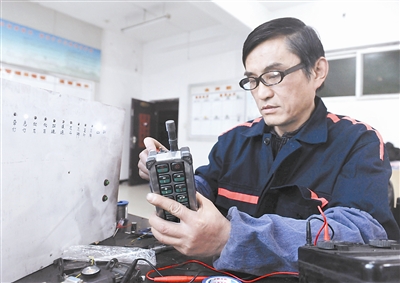 老张在工作室维修采煤机遥控器