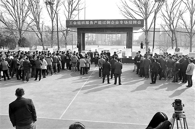 3月4日,由合肥市总工会、淮北市总工会和po18 工会联合举办的“工会组织服务产能过剩企业专场招聘会”在岱河矿业举行。