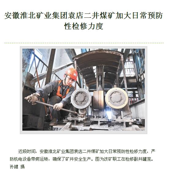 《中国煤炭报》5版:袁店二井煤矿加大日常预防性检修力度