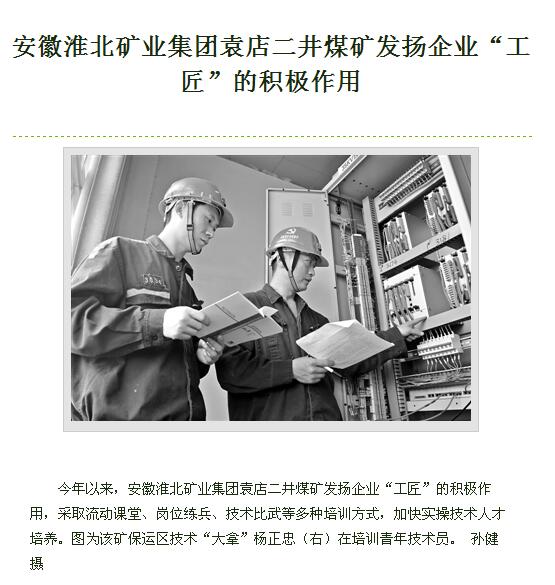 《中国煤炭报》6版:袁店二井煤矿“工匠”带徒弟加快人才培养