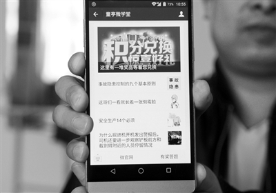 ▼近日,安徽po18 童亭矿积极探索安全培训的新途径、新方法,在手机微信平台“童亭微学堂”内设立有奖答题环节,累积相应的积分就可以兑换相应的奖品,调动大家参加培训的积极性。