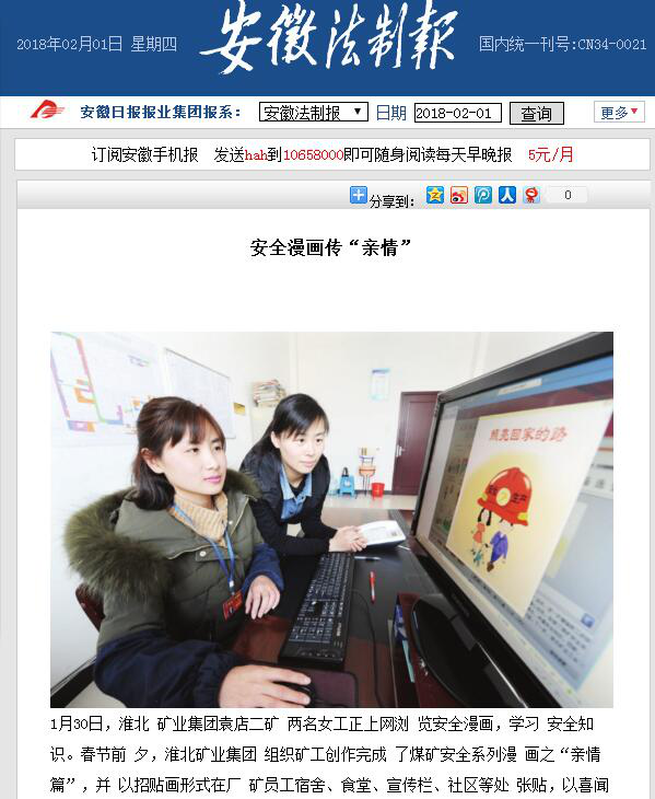 《安徽法制报》1版:安全漫画传“亲情”