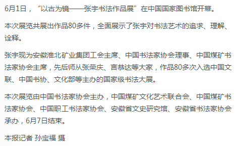 《中国煤炭报》:张宇书法作品展