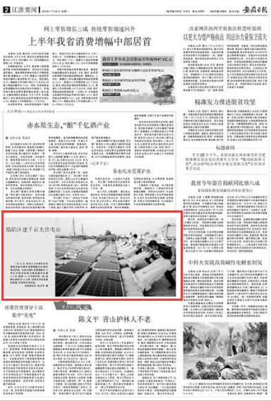《安徽日报》:塌陷区建千亩光伏电站