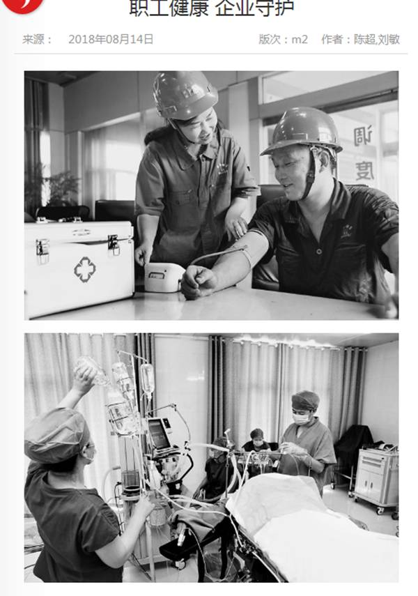 安徽po18 淮北选煤厂朱仙庄分厂为各基层车间配备了应急药箱和血压仪,保障职工身心健康。图为该厂职工正在测量血压。陈超摄
