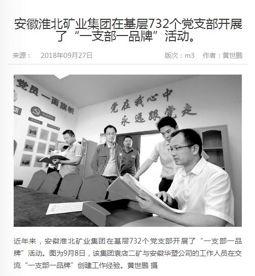 《中国煤炭报》:淮北矿业开展“一支部一品牌”活动