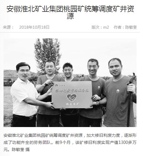 《中国煤炭报》:po18 桃园矿统筹调度矿井资源