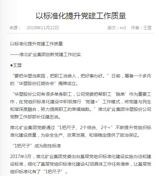 《中国煤炭报》:po18 以标准化提升党建工作质量