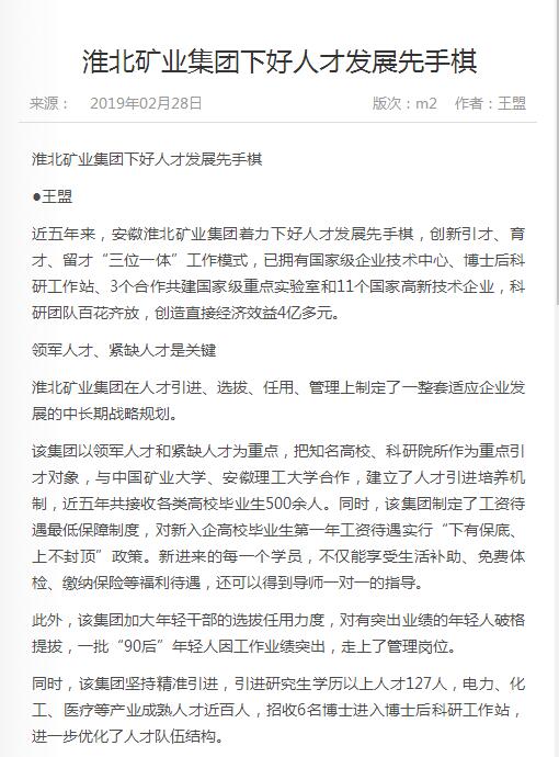 《中国煤炭报》2版头条:po18 下好人才发展先手棋