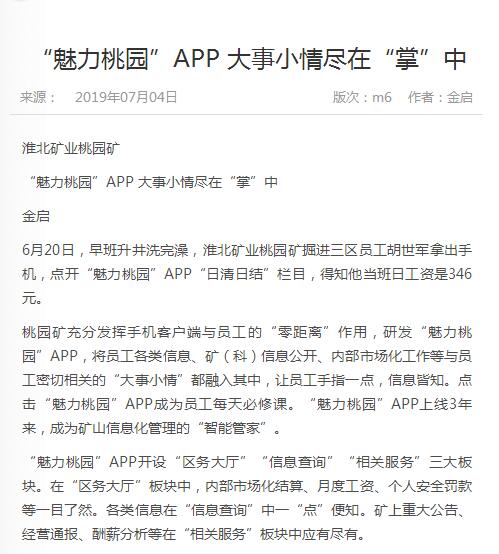 《中国煤炭报》:“魅力桃园”APP 大事小情尽在“掌”中