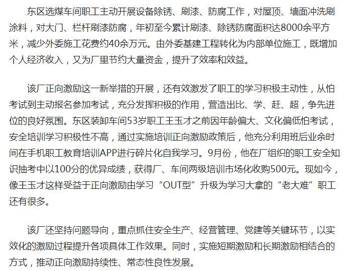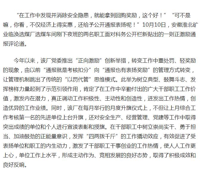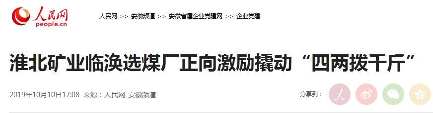 《人民网》:淮北矿业临涣选煤厂正向激励撬动“四两拨千斤”