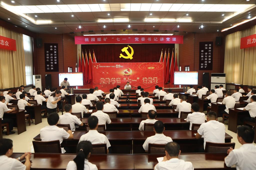 7月1日,桃园矿举办的重温入党誓词和党委书记讲党课两项“有声有色”的活动拉开了该矿庆祝中国共产党成立99周年系列活动的帷幕。
