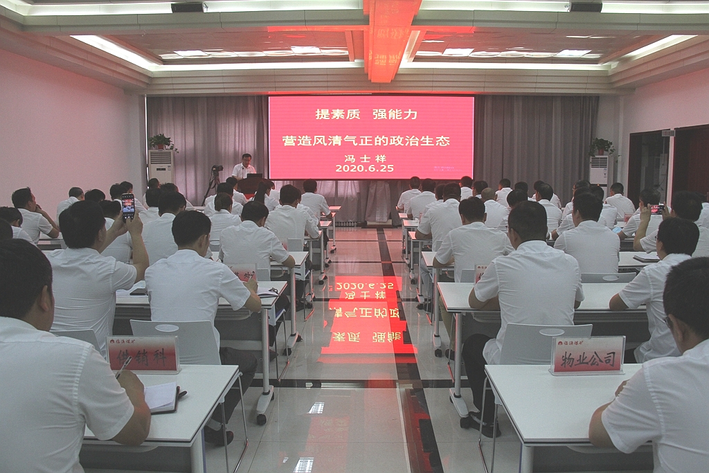 授课围绕“提素质、强能力,营造风清气正的政治生态”主题,从“终身学习,不断提高自身素质;用力用心用功,不断增强工作能力;严于律己,不断营造良好的政治生态”三个方面作了讲解。要求全矿党员干部:要不断自觉加强学习,注重学习与实践的结合,做到知行合一,善于总结提高;认真对待每一项工作,正确对待自己、对待组织、对待群众,追求完美和卓越,履职尽责,团结协作;从严要求自己,自觉接受监督,把大事抓在手中、把队伍带在身边、把群众放在心间、把名利放在身后,从自身、从小事、从现在做起,树立廉洁自律好形象。