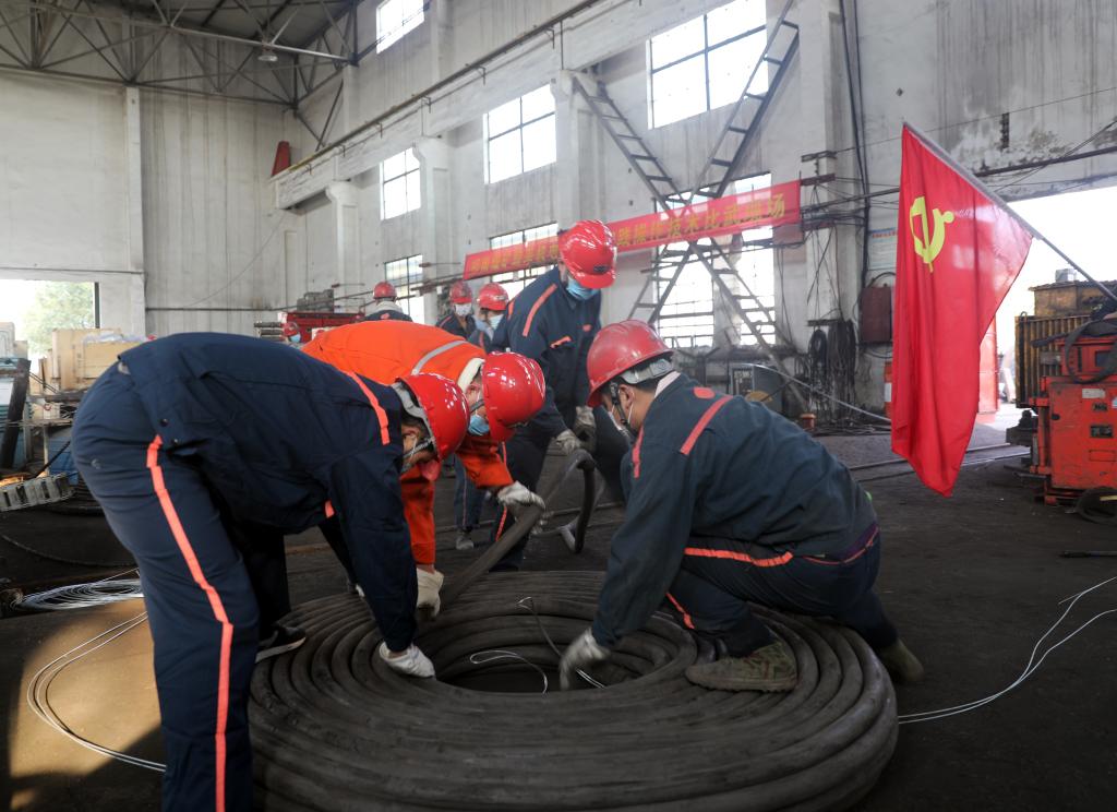 “今天,轮到我们这组整理电缆,大家要注意安全,相互提醒,在保证安全的前提下,增加电缆复用量,减少报废量,提高整理、分拣效率。下面我做一下分工……”当天任务负责人、修护区党支部书记彭华在该矿原综采预备区库房给组员进行分工。