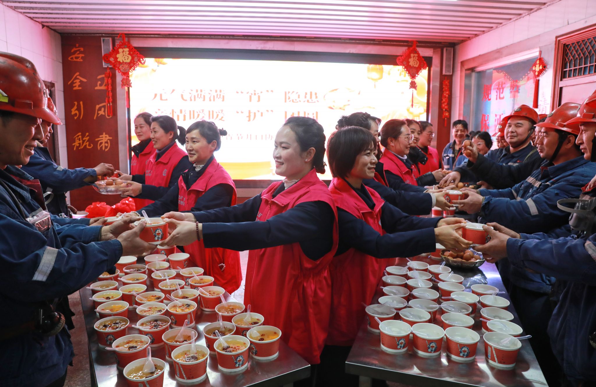 元宵佳节来临,临涣矿副井口暖意融融,香甜气息弥漫空中。矿井开展“元宵节”暖心慰问活动,为上下井职工送上节日祝福。(撰稿:陈梦瑜  审核:刘玉松)