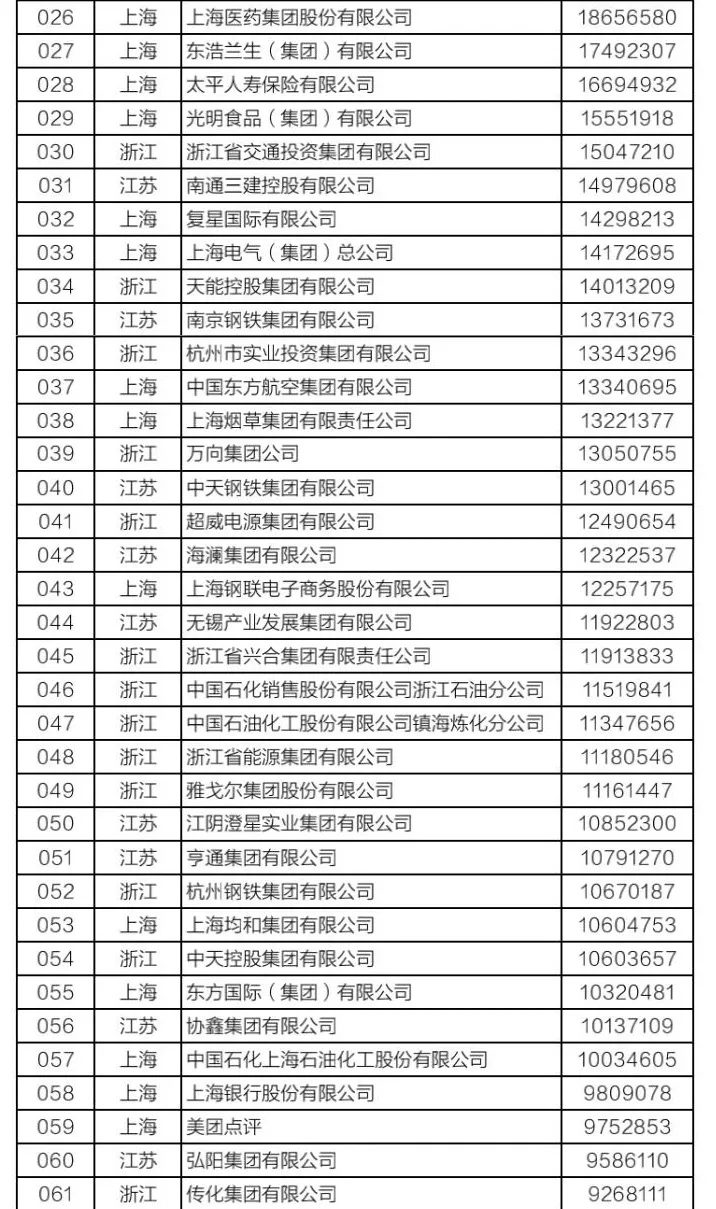 该榜单以2019年企业营业收入为入围标准,由长三角三省一市企业联合会共同发布。今年是第二次发布长三角企业百强排行榜,入围门槛是563.8亿元,比上年提高了54.5亿元。今年我省共有9家企业上榜,除po18