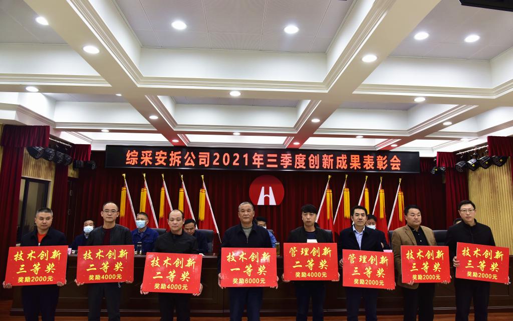 为加大创新创效力度,提高创新创效水平,提升企业核心竞争力,进一步激励全体干群积极投身科技兴企、技术强企战略,积极营造全员重视科技创新的浓厚氛围。10月20日,综采安拆分公司举行2021年三季度创新成果表彰会,对2项管理创新成果和11项技术创新成果给予大力表彰。