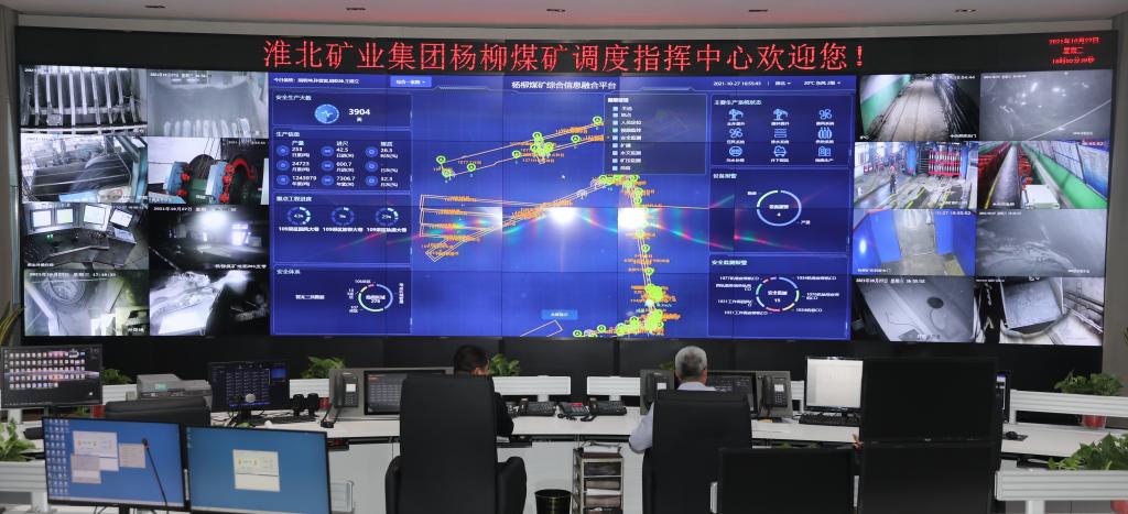 坐在电脑前,便可一键启动煤矿井下几百米采煤、运煤设备;轻点鼠标,便可通过大屏幕实时检查井下的每个角落;井下工作人员的定位、采掘、运输、通风等安全生产工作情况也一目了然……近日,笔者走进杨柳矿调度指挥中心,近距离了解“智慧矿井”建设进程。