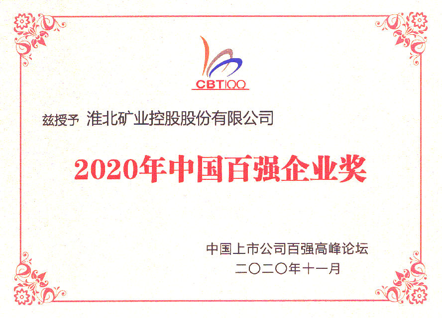 11月28日,“第二十届中国上市公司百强高峰论坛”在北京举行,该论坛由中国上市公司百强高峰论坛组委会、华顿经济研究院主办。淮北矿业以优异的经营业绩和良好的社会形象,获评2020年“中国百强企业奖”“中国道德企业奖”“中国百强优秀董秘奖”三项大奖。